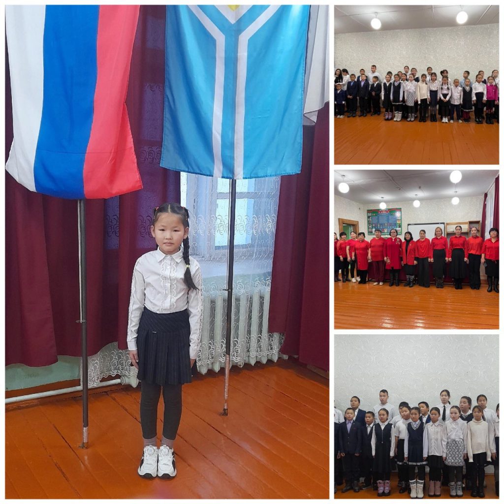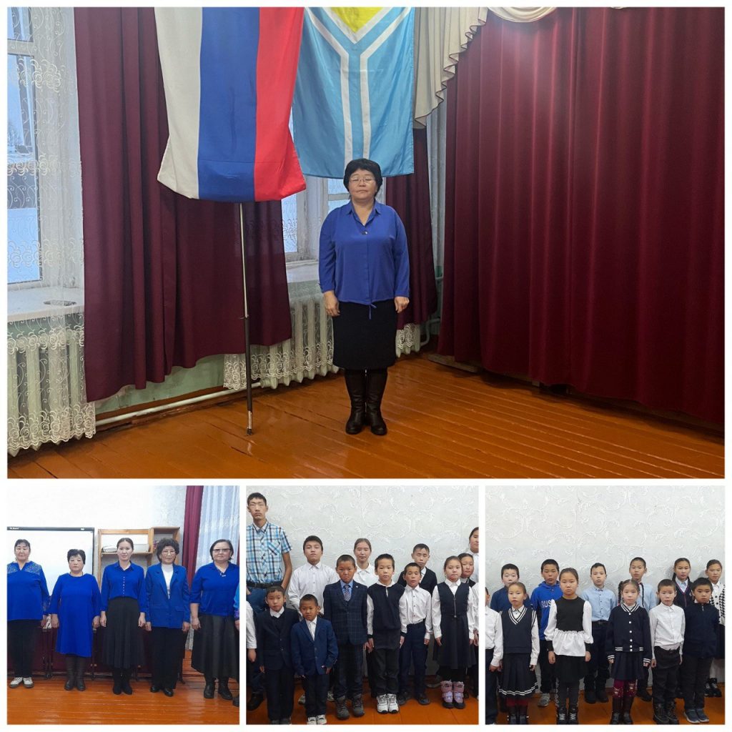 Церемония поднятия флагов РФ и РТПраво поднять флаги предоставили ученице 3 класса Эртине Руслане, номинанту «Келир уенин тоолчузу» в муниципальном конкурсе «Тоолдун чечени— торгу дег чараш «