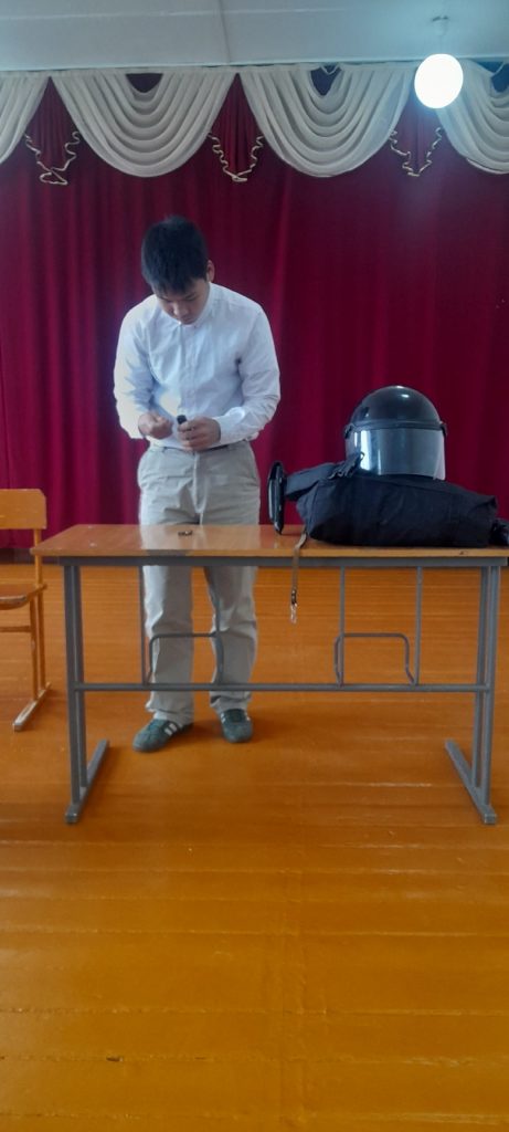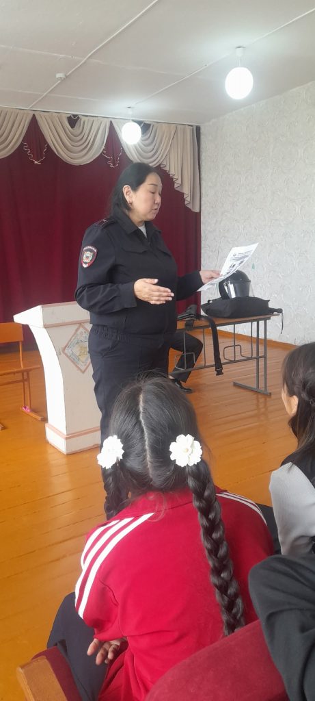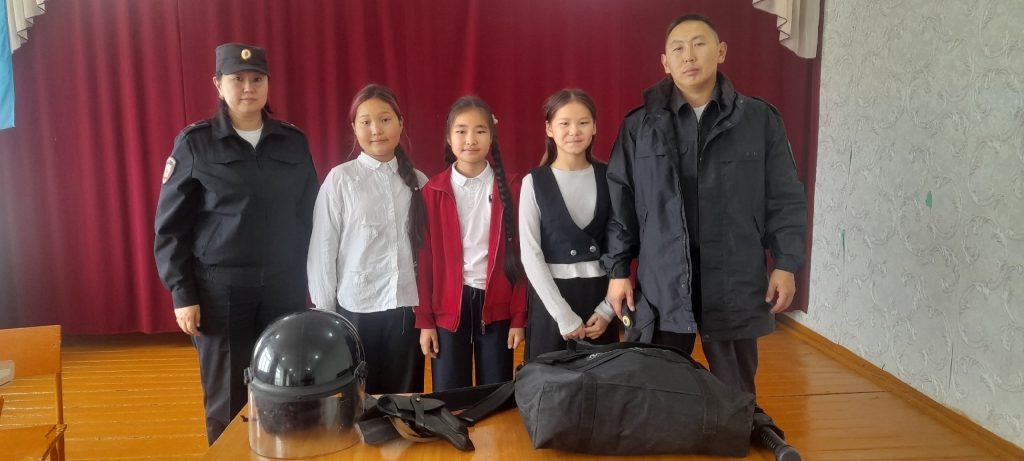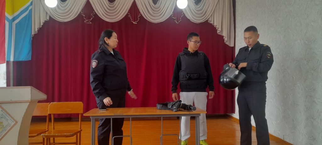 В рамках недели правовых знаний сегодня в нашей школе проведена правовая встреча сотрудниками полиции. Старший инспектор ПДН ОУУП и ПДН МО МВД России "Кызылский" майор полиции Майынды С.В. озвучивала наиболее актуальные темы "Комендантский час",во время которого несовершеннолетним запрещается находиться в общественных местах без сопровождения родителей, "Правовая ответственность несовершеннолетних". Сотрудники рассказали о их работе,о самой структуре. Дали обучающимся потрогать и примерить каски,жилеты,оружие. Учащиеся приняли активное участие в беседе и задавали интересующие их вопросы.(Охват 38 учащихся.)