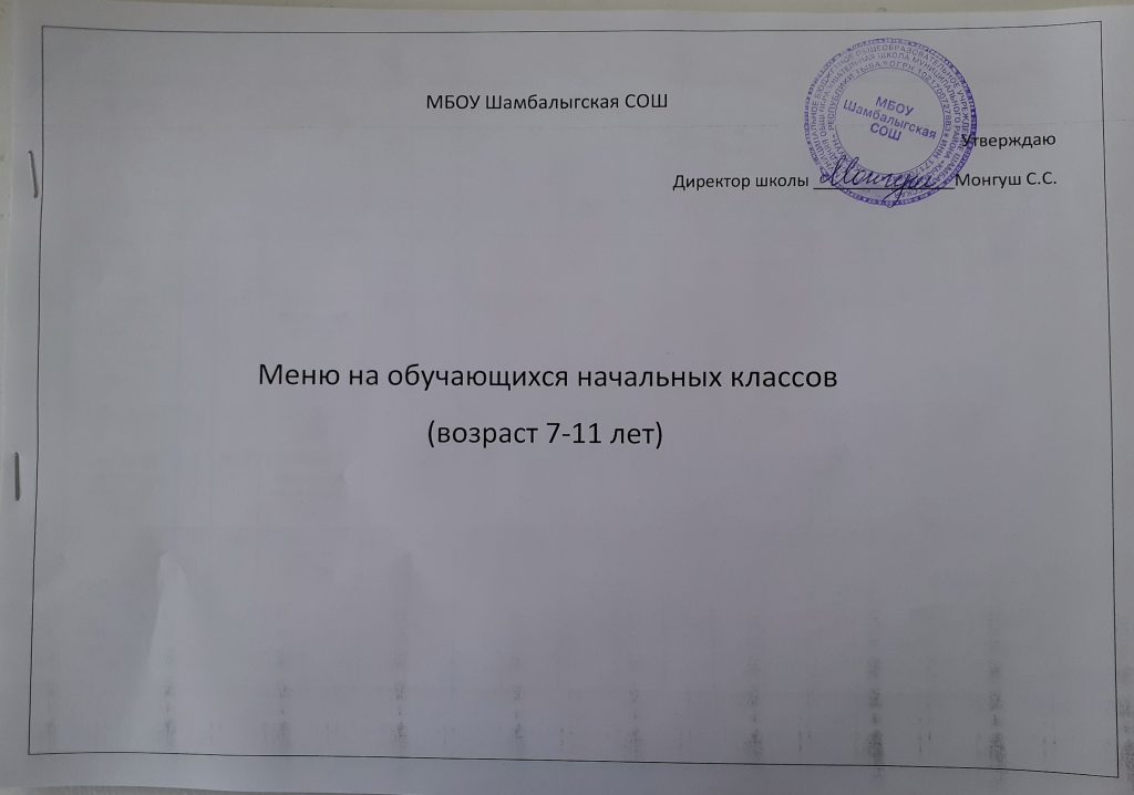 Приказ Об утверждении варианта типового десятидневного меню для обучающихся начальных классов общеобразовательных организаций Республики Тыва Скачать